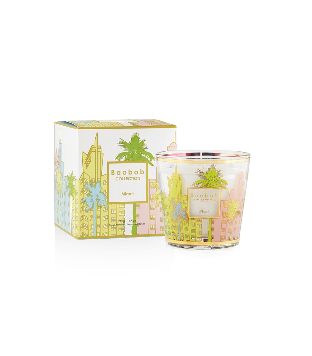 The Miami scented candle is decorated with a pastel and gold silkscreen print that mimics the architecture of South Beach's art deco buildings. Its fresh perfume of cypress and cedar will remind you of a joggers cologne in the early morning as it transports you to the sporty and arty atmosphere of the city.